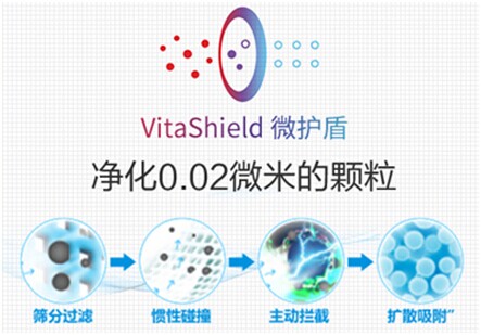同时,空气污染的存在正变得越来越复杂,单单依靠“PM2.5滤除率99%”之类的空气净化器已经远远不够。还要寻求滤除更小直径颗粒物的空气净化器,滤网和过滤技术也就变得很重要。目前市场上,仅有VitaShield IPS微护盾科技,能以4种先进的空气净化方式——“筛分过滤”、“惯性碰撞”、“主动拦截”及“扩散吸附”高效过滤PM2.5、甲醛、甲苯、有害颗粒物、细菌、病毒和TVOC总挥发性有机化合物等有害气体;最小能过滤0.02微米的微尘颗粒物,哪怕是比PM2.5上限值还小100倍的细微颗粒物,如过敏原、细菌及病毒等,也可无忧滤净。日常生活中可能遭遇到的污染物,几乎都可以被彻底滤除。